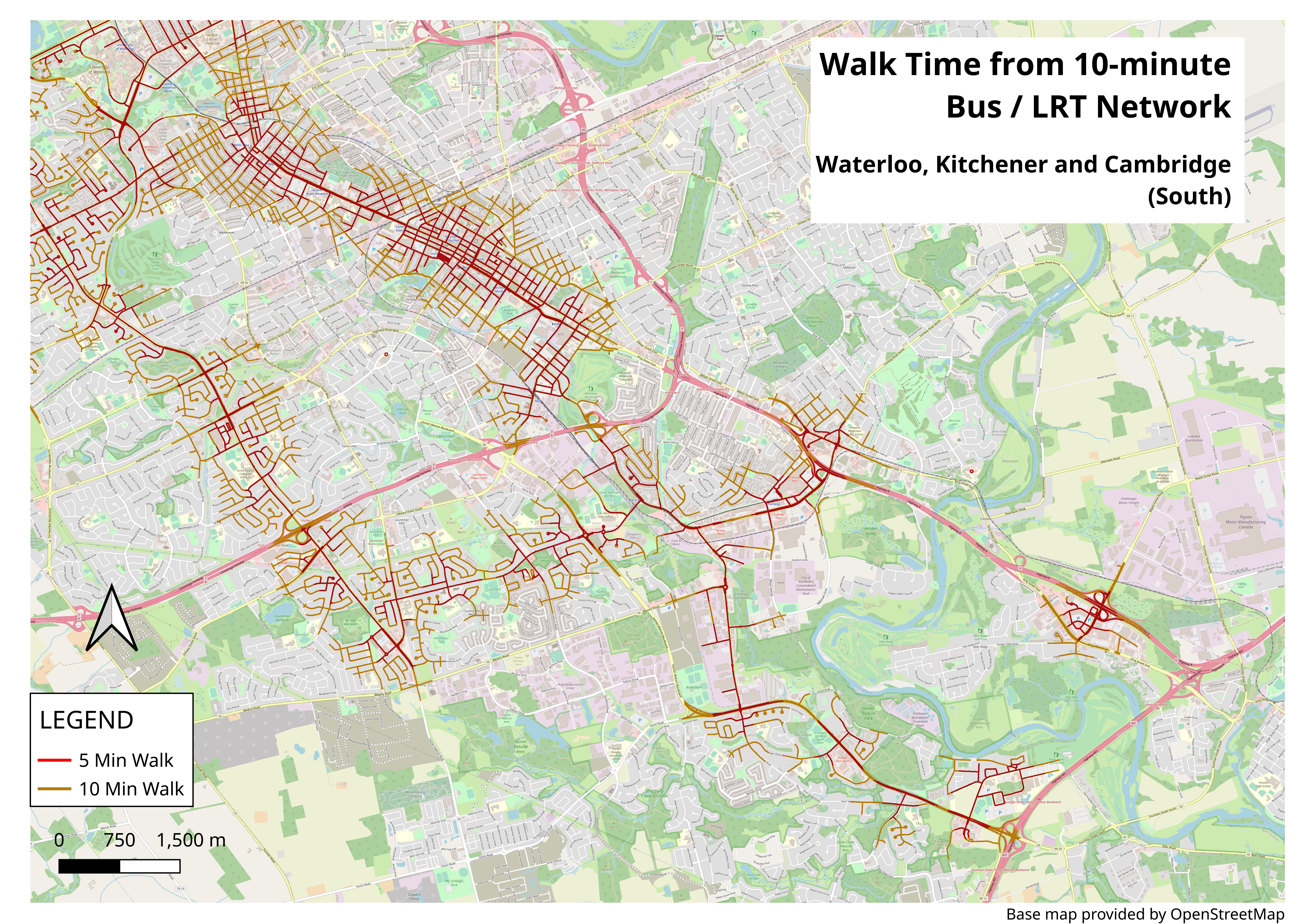 Walkability & the 10-minute transit network in the Waterloo Region
